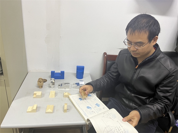 叶荣伟老师本学期承担23数控班《机械制图》课程的教学任务,在授课过程中,叶老师发现部分学生的空间想象能力不是很强,在进行三视图绘制时,有时候难以想象出所绘图形的立体图形,导致三视图绘制错误。为了解决这个问题,叶老师根据机械制图课程作业手册,利用课余时间指导数控兴趣小组的学生制作了作业手册中各种图形的立体实物,作为课堂教学辅助用教具。这些教具投入使用后,23数控班学生绘制三视图的正确率有了很大的提高。