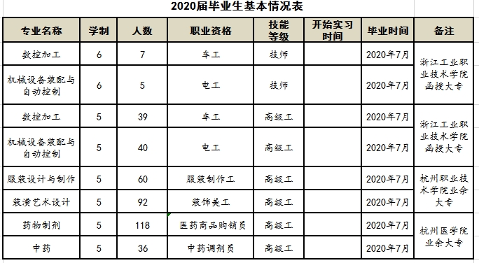 学院现有全日制在校学生2000余人。开设数控加工(数控车工)、电气自动化设备安装与维修(原机电一体化技术)、药物制剂、中药、服装设计与制作、美术设计与制作(原装潢艺术设计)、电子商务、形象设计等8个专业,其中,药物制剂、数控加工、装潢艺术设计三个专业为省级品牌专业,服装设计与制作专业为省级示范专业,机电一体化专业为市级示范专业。学院实验、实习设施设备先进,拥有实训机房8个,网站设计与开发工作室1个,并建有数控、普车、电工、药学、服装、平面设计、形象设计等校内实训中心和占地80余亩的药学类专业校外实训基地,保证各专业技能实训课程顺利开展。
